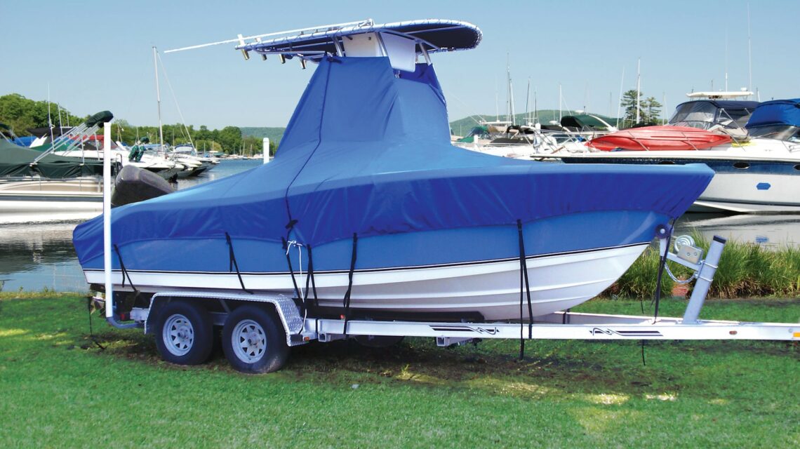 Bow and stern sections zip together for single-person installation. “Console tube” secures up underneath the T-Top. Protects the center console and will accommodate most sizes and positions of tops and consoles on boats up to 25’4″. Tie-Downs System included – system relieves stress on the zippered ends during over-the-road trailering. Now available for boats without bow rails.